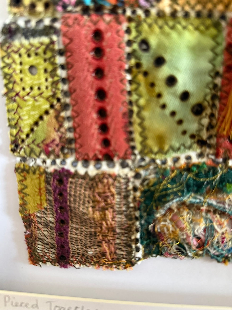 My artwork is about rescue and reinvention, taking worn, discarded fabrics and pushing them through heat and stitch until something unexpected emerges. Each piece carries traces of its past life, held together by texture, curiosity and a sense of gentle defiance against waste. If you’re keen to know more, I’d be delighted to share further details about how any particular piece.